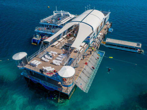 Experience the magic of the Great Barrier Reef at the all-weather Pontoon which is the newest and most technologically advanced pontoon on the Great Barrier Reef. A 90-minute cruise takes you to Moore Reef for snorkelling, scuba diving, helicopter flights, and more. Stay dry with a sundeck, and view the coral from the underwater observatory, glass-bottom boat, or semi-submersible tour.