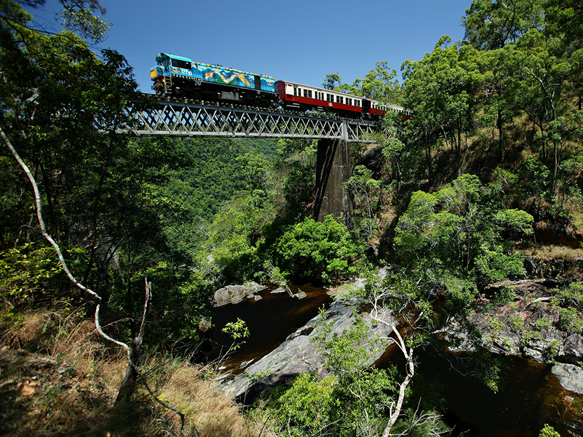 Discover Kuranda with Skyrail and Kuranda Scenic Railway. Glide above the rainforest in comfortable six-person gondolas and explore Kuranda in your own time. Enjoy the 1.5 hour journey on the Kuranda Scenic Railway, a historic railroad that travels through the breathtaking World Heritage Listed Wet Tropics Rainforest.