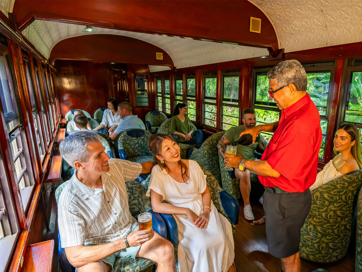 The original Kuranda Scenic Railway Heritage Class carriages offer the old-world charm of travelling in authentic timber carriages, some of which are up to 100 years old. Upgrade to Gold Class on the 9.30am Train service (see below for list of inclusions)